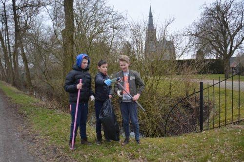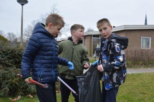 In drie groepen trokken de leerlingen met hun begeleiders elk naar een deel van het dorp. Met prikkers, emmers en vuilniszakken werd het afval verzameld en in containers gedumpt welke door de gemeente de wordt geleegd.