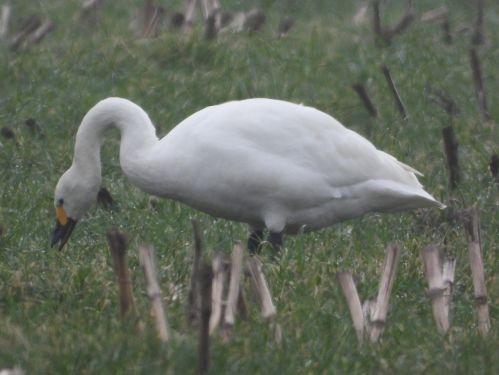 Een grote groep knobbelzwanen bivakkeren dagelijks in een weiland en het naastgelegen maisveld langs de Spannenburgerdyk ter hoogte van de Noed. Ook vlak voor Langweer zit een grote groep knobbelzwanen in het weiland.