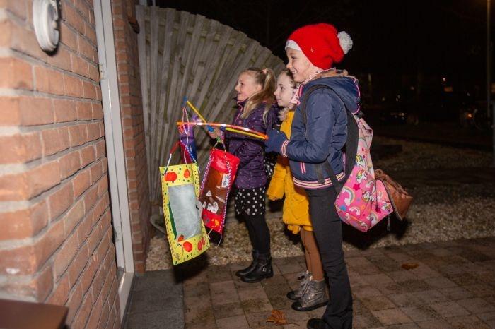 Lekker warm ingepakt trokken de kinderen donderdagavond met Sint Maarten van deur tot deur. Bij sommige huizen was een tekst op de deur geplakt: zij moesten de deur helaas voor de kinderen gesloten houden. Bij hen was het zelfbediening.