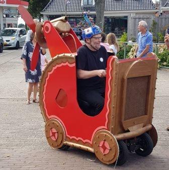 SINT NICOLAASGA - De wereldberoemde kunstenaar Harry Arling bezocht zondagmiddag de bouwers van buurtvereniging De Fûgeldobbe. Hij was onder de indruk van de praalwagen, die de buurt geïnspireerd op zijn werk maakt.
