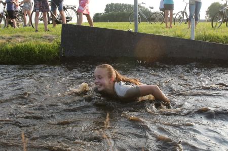 De thermometer stond nog op ruim dertig graden toen de eerste teams zich vrijdagavond om half zeven meldden bij het Dorpshuis in Tjerkgaast. Dorpshuis It Spântsje was ook dit jaar het startpunt van de dertiende Blubberrace. Maar liefst 34 teams hadden zich aangemeld voor het jaarlijkse spektakel, dat tijdens de dorpsfeesten wordt gehouden. De laatste ploeg startte om kwart voor negen.