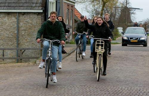 SINT NICOLAASGA - Ondanks de frisse wind allemaal vrolijke gezichten bij de Hap Trap en Schnap fietstocht van de KPJ op paaszondag. Ruim 120 fietsers hadden zich aangemeld. Opvallend veel ouders van KPJ leden gingen van start op dit mooie initiatief van de Sint Nykster jongeren vereniging