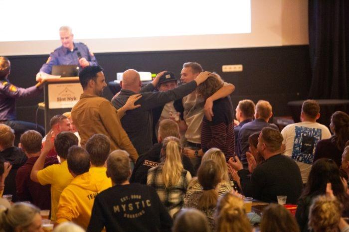 SINT NICOLAASGA - Het team 'Vrienden van ganzer live' bestaande uit Arjan Postma, Jurre Leeuwendal, Tjitte Werkman, Kevin Drost, Thom Talsma en Rudi Postma hebben de dertiende Sint Nykster Brandweer survival gewonnen. Zij kregen de bekende Brandweer survival muts uitgereikt. Het zestal had in looptijd 16 minuten meer nodig dan de Busbikkels. Over de ruim 23 kilometer hadden de vrienden van Ganzer live met de aftrek en bonus een looptijd van 5 uur en 8 minuten en de Busbikkel 5 uur en 24 minuten.