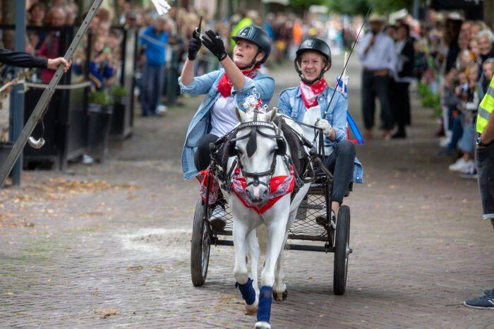 De plaatselijke favoriet Marchel Ferdinand met steker Pieteranne Brinksma kregen de handen op elkaar: zittend op een boerenwagen en twee mooie Friese boerinnen in de wagen. Met 28 ringen bleven ze in de middenmoot. Gooitzen Wester startte met zijn 11-jarige dochter Douwina voor de eerste keer bij het ringrijden. Zij zullen zeker vaker samen gaan rijden, want ook zij kregen ook de handen op elkaar en deden het prima. Als laatse reed een prachtig dubbelspan Shetlanders pony’s. Met de ringen iets lager manoeuvreerde Anny Zijlstra uit Joure het dubbelspan langs de palen zodat steekster Willianne Negerman net bij de ringen kon.