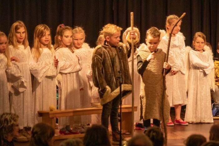 SINT NICOLAASGA - Leerlingen van groep 1 t/m 3 van de basisschool it Klimmerblêd hebben donderdagmorgen 2022 afgesloten met het eeuwenoud kerstverhaal voor de ouders , pakes en beppes en de leerlingen in het Zalencentrum