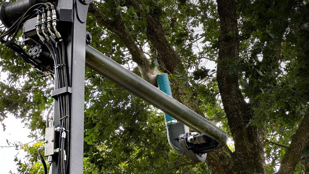 De stofzuigerarm op de trekker komt maximaal elf meter hoog. Met een verreiker/kraan willen we tot twintig meter hoogte zien te komen. We rusten de verreiker/kraan met camera's uit om te zien waar de nesten zitten. Als het meezit, kunnen we daar volgend jaar al mee werken'', vertelt Fokke Tuinier.