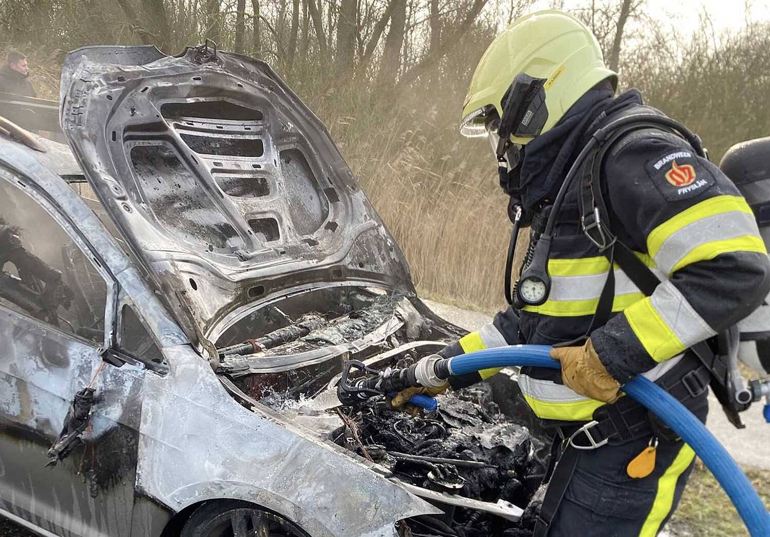 Voor de nacontrole is de motorkap met een spreider geopend, waarna met een warmtebeeldcamera is gecontroleerd of er nog warmtebronnen aanwezig waren. Die warmte bleek nog in het voertuig te zitten. De brandweer heeft daarop nog verder nageblust, waarna de eenheid terug kon naar de kazerne.