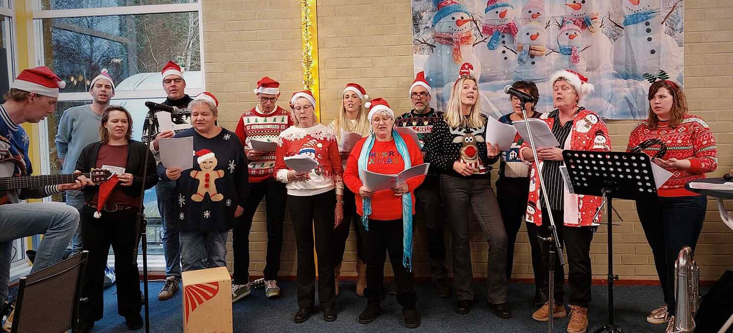 Een paar dagen - op dinsdag 16 december 2025 - eerder organiseerde Maeykehiem een kerstdiner voor cliënten en hun verwanten, waarbij de gymzaal was omgetoverd tot een sfeervolle feestzaal. Na het diner maakte de feestsetting plaats voor een theateropstelling en kwam het kerstverhaal tot leven onder leiding van verteller Henk Jan Oudenampsen, met rollen voor cliënten en collega’s.
