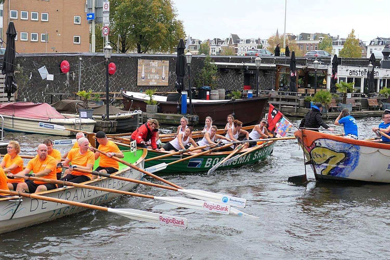 Na de finish overheerste tevredenheid. ,,We gingen zonder verwachting, want met onze grote sloep hebben we het altijd wat zwaarder dan de kleinere teams. Maar tweede worden in Amsterdam voelt als goud.”